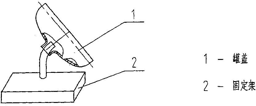 這樣,由于罐蓋與內(nèi)罐用卡子固定在一起,且安裝在轉(zhuǎn)胎上,操作時(shí)可以借助轉(zhuǎn)胎轉(zhuǎn)動(dòng)時(shí)焊接。從圖中可以看出,用這種方法焊接比用A種方法焊接,要安全、省力、省時(shí)得多。
